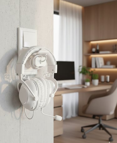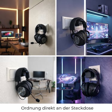 Verwandle Deine Steckdose im Handumdrehen in ein minimalistisches Dock für Deine Kopfhörer. Unsere Halterung nutzt einfach Deinen vorhandenen Netzadapter als stabilen Anker – ganz ohne Bohren oder Kleben. So verschwinden die Kopfhörer von der Arbeitsfläche und Dein Setup bleibt absolut clean.