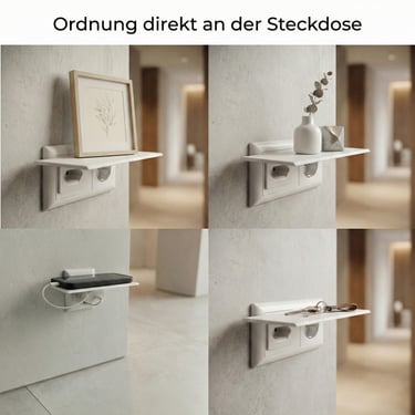 Verwandle Deine Steckdose im Handumdrehen in einen praktischen Aufbewahrungsort für Schlüssel, Geldbörse oder Kopfhörer. Speziell entwickelt für alle Eurostecker der Schutzklasse 2 (Flachstecker), bietet Dir die Ablage minimalistischen Stauraum genau dort, wo du ihn brauchst.
