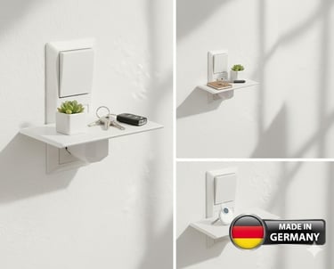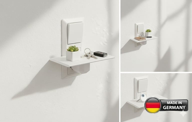 Unsere Plugee Ablage verwandelt jede Steckdose in einen praktischen Aufbewahrungsort – ideal für Schlüssel, Geldbörse, Kopfhörer oder andere Essentials.